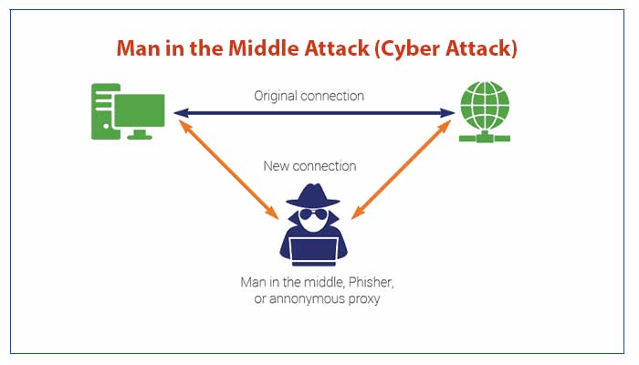 A Man In The Middle Attack refers to a kind of cyber attack whose particular motive is to get involved in the conversation someone is having with someone in order to get the sensitive and personal information from both the parties. By getting in the middle, a hacker can impersonate both the end-users to talk. While talking to person A, the hacker can appear to be person B and vice versa. The main targets of this kind of attack are Domain Name Server, Public Wi-Fi, and email service.