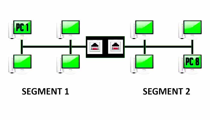 Let us know the brief explanation for the connection of the local area network. The below figure represents the connection of the bus topology via a bride using Ethernet Technology. Here the bridge represents the router, switch, or hub. This Bridge is connected through another Bus topology on the other side of the Bridge.