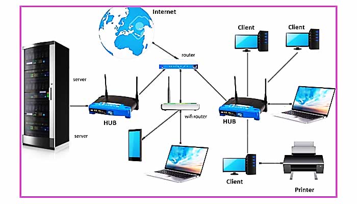 A router is a central device that connects multiple user computers to a single central device called a router or switch. The arrangement of the local area network can be bus topology, star topology, or ring topology. These three topologies are used to connect the local connection of networks.
